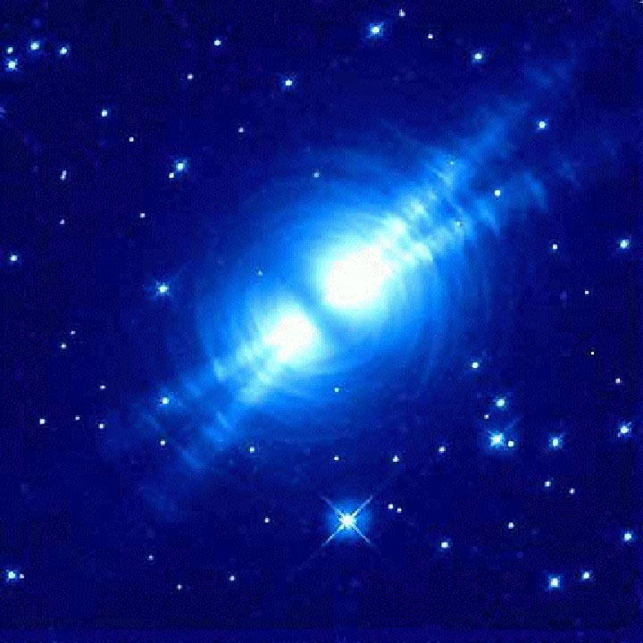 from a hidden star, crisscrossed by numerous bright arcs. Referred to as